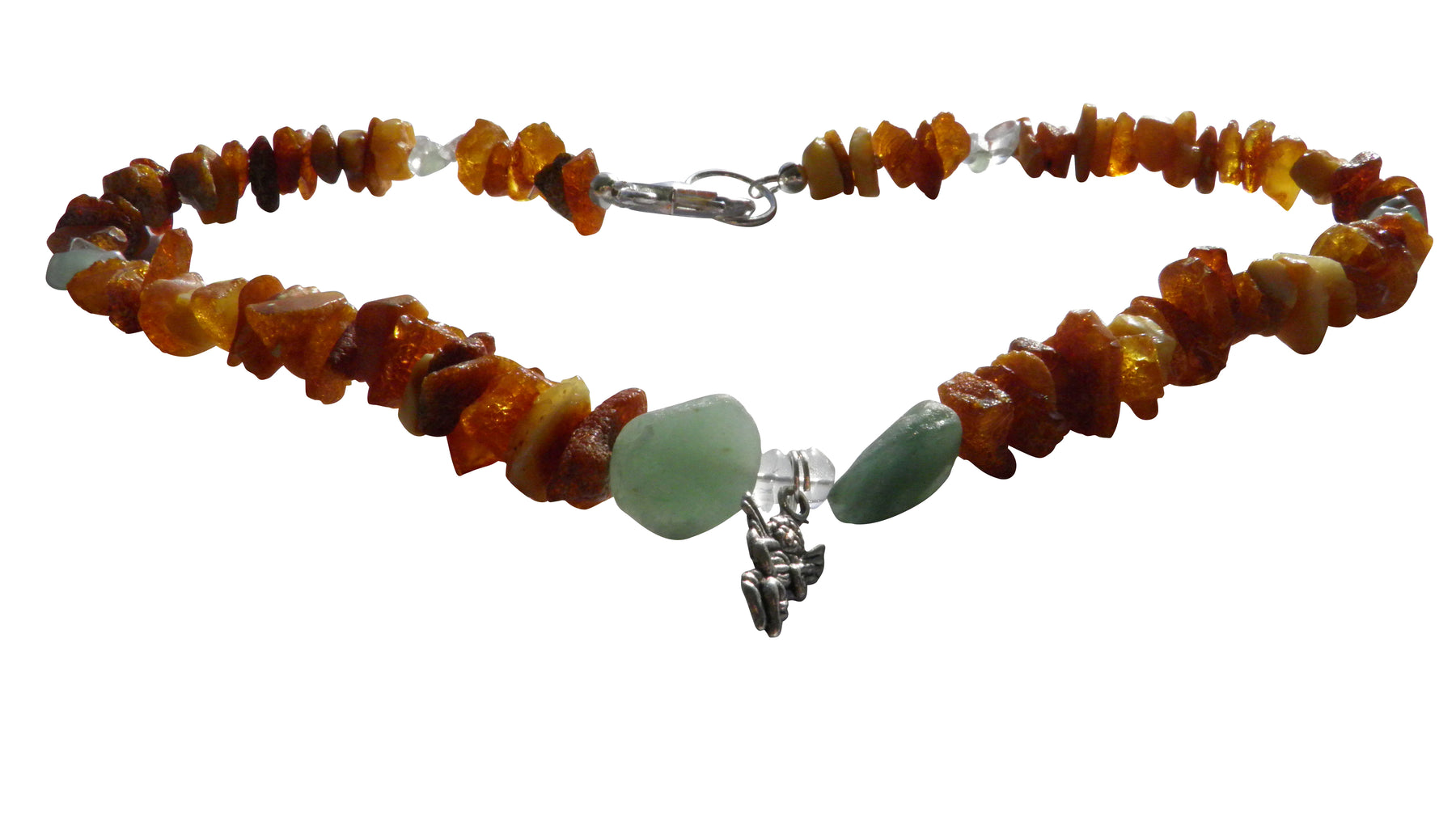 Hunde Bernsteinkette mit Bergkristall und Aventurin Länge 48cm