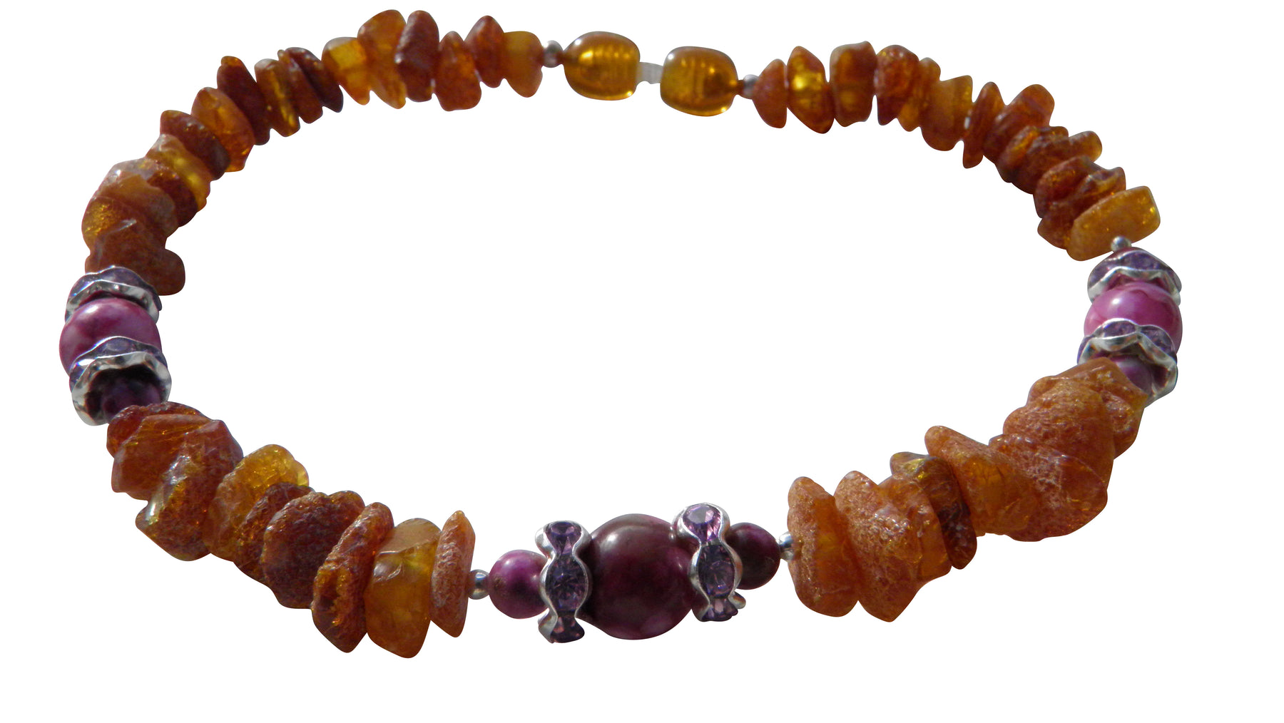Material: Echter baltischer Bernstein, Sugilith, Schmuckdraht, Kunststoff-Drehverschluss