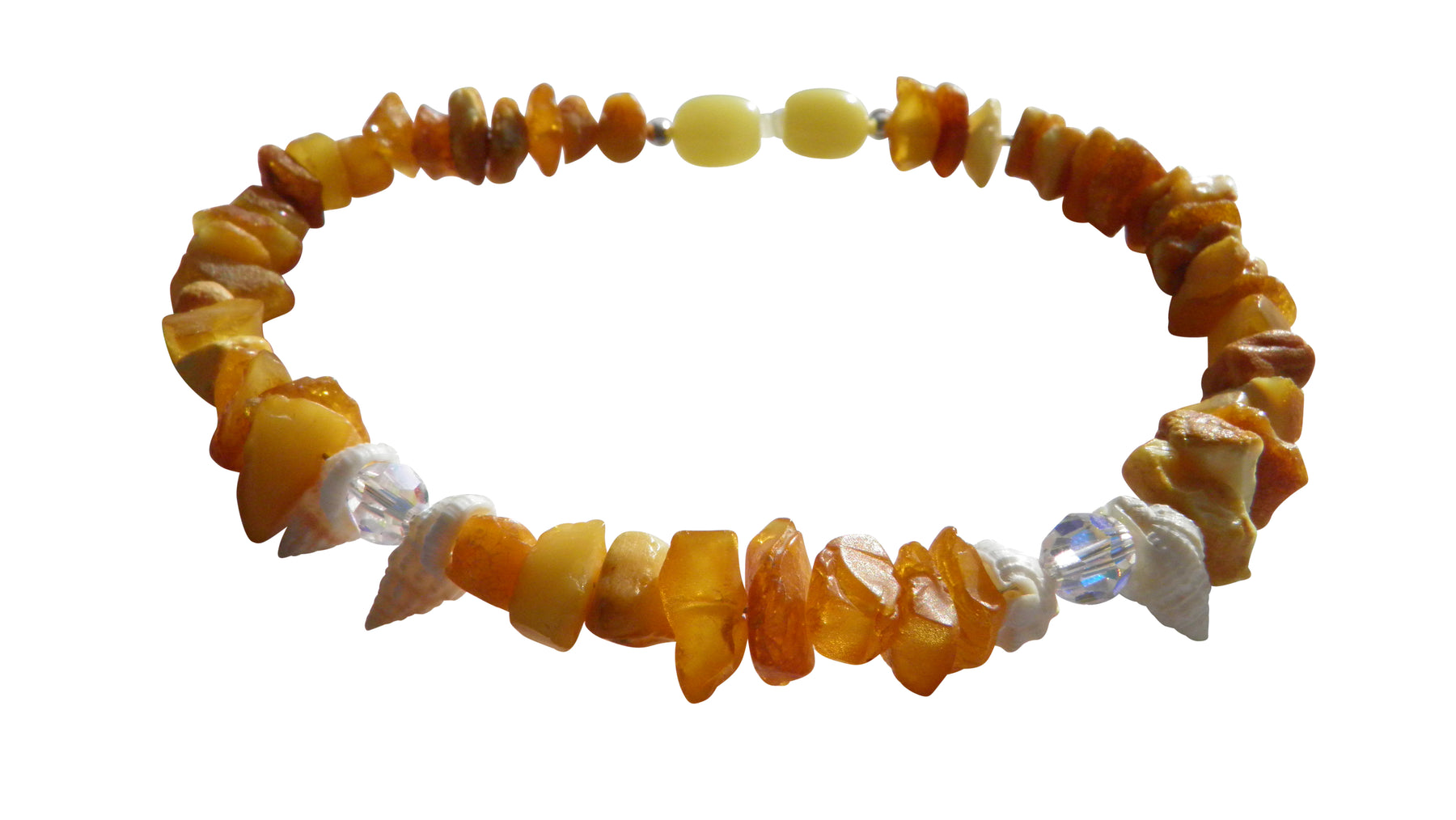 • Material: Bernstein, Muscheln, Swarovski-Perlen, Schmuckdraht