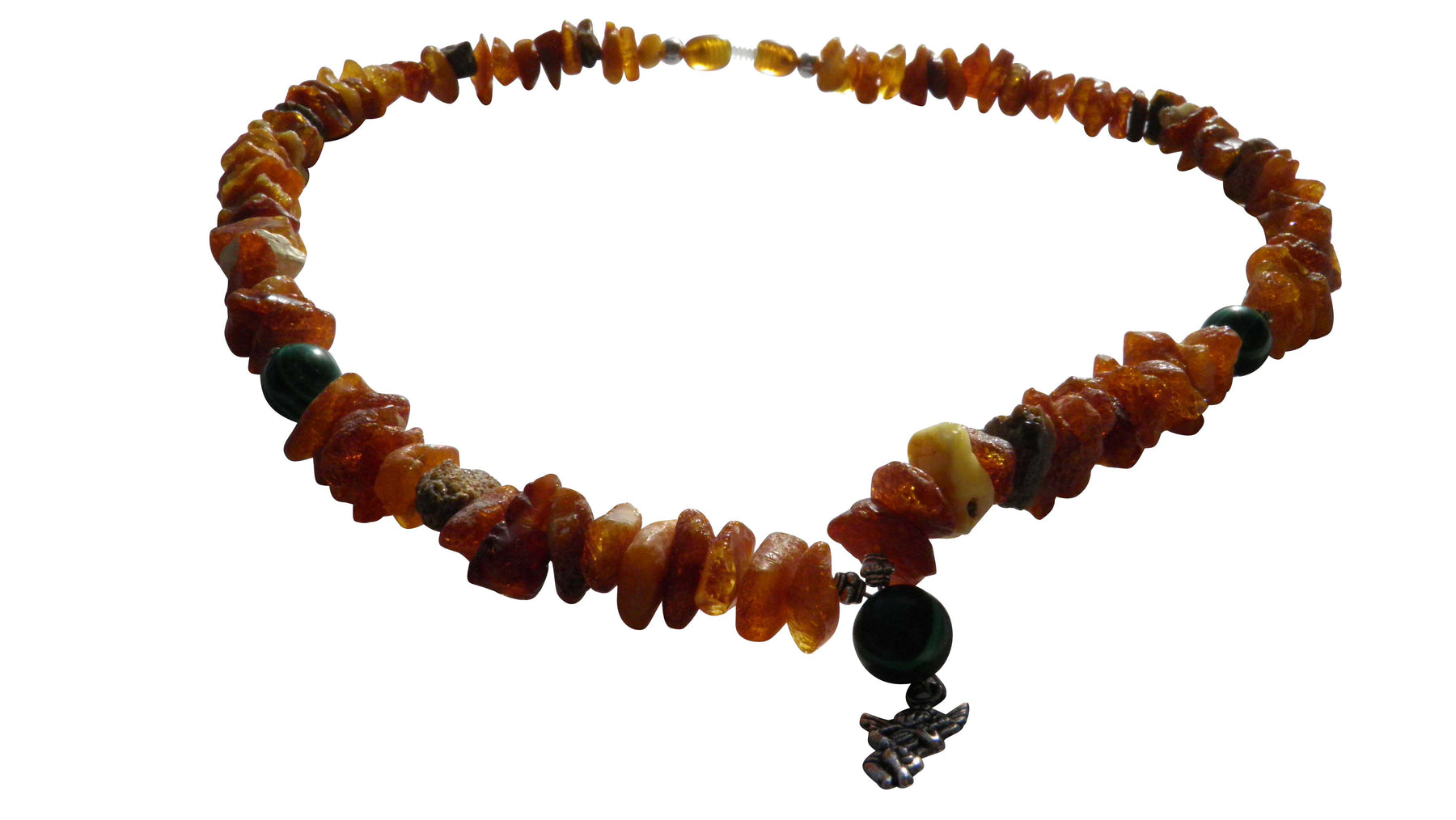 • Materialien: Naturbernstein, Malachit, Schmuckperlen, Schmuckdraht