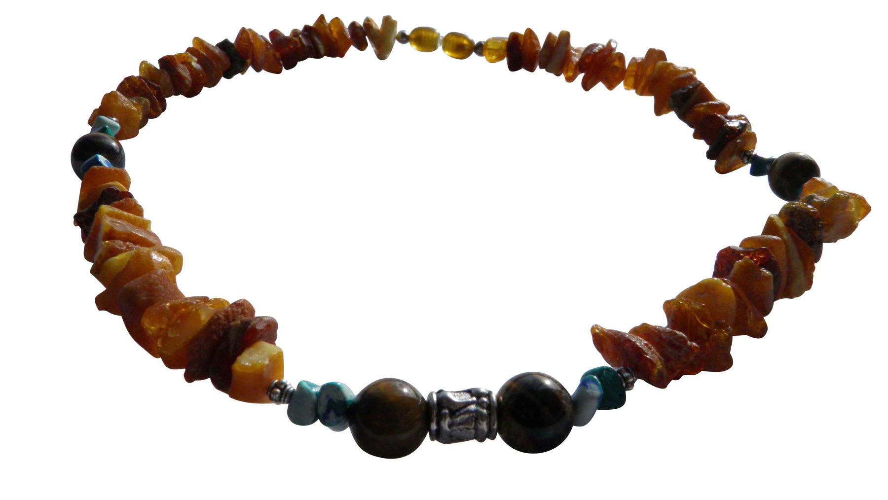 • Material: Echter baltischer Bernstein, Tigerauge, Schmucksteine, silberfarbene Schmuckperlen, Schmuckdraht, Kunststoffverschluss